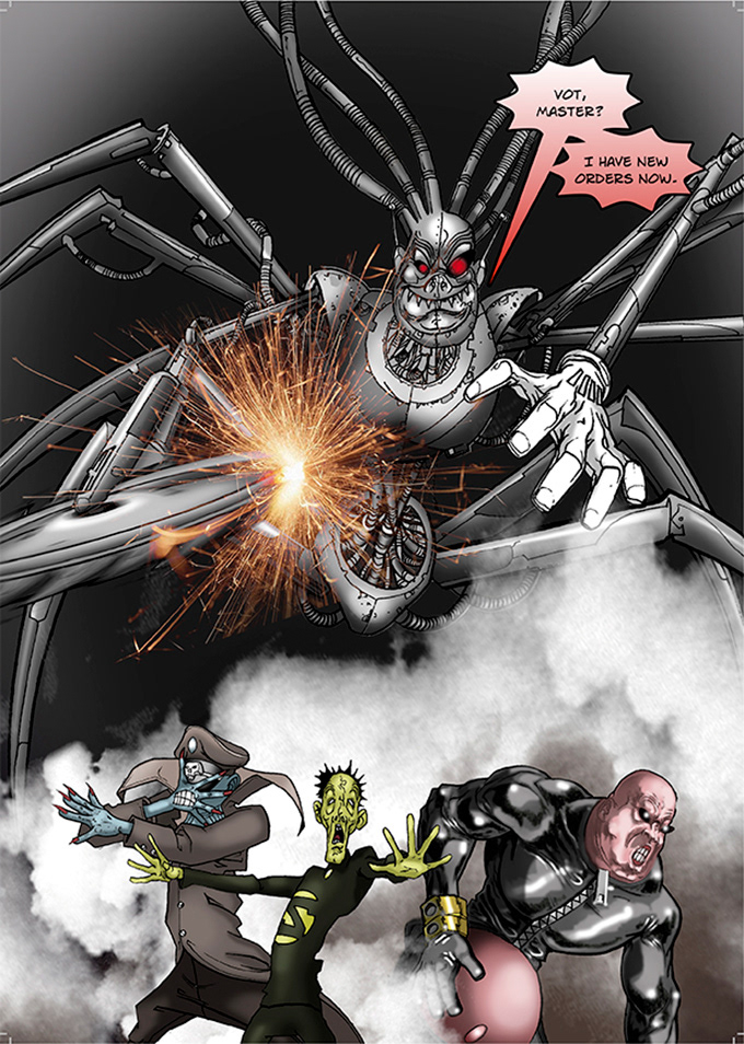 – Graphic Novel Design + photoshop colouring and effects of line illustrations by DC Comic artist Simon Harrison –